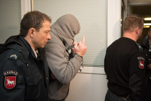 Dainininkę Romą Mačiulytę sumušęs Valerijus Simovičius buvo atvesdintas į teismą (9 nuotr.)