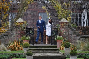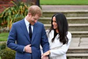 Ką tik susižadėję princas Harry ir Meghan Markle pasirodė rūmų sode (23 nuotr.)