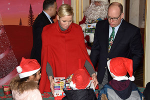 Monako kunigaikštis Albertas II su žmona kunigaikštiene Charlene dalijo kalėdines dovanas (7 nuotr.)